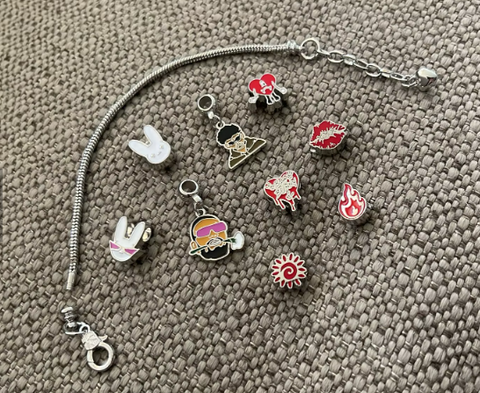 Lleva en tu muñeca la esencia con 9 charms únicos que cuentan tu historia como fan. Exclusivos, con flow y listos para combinar con tu outfit para que tu vibe hable por ti en cada momento.🎶